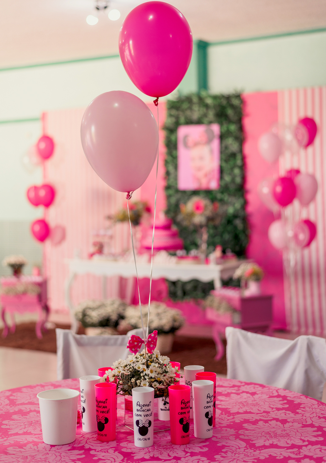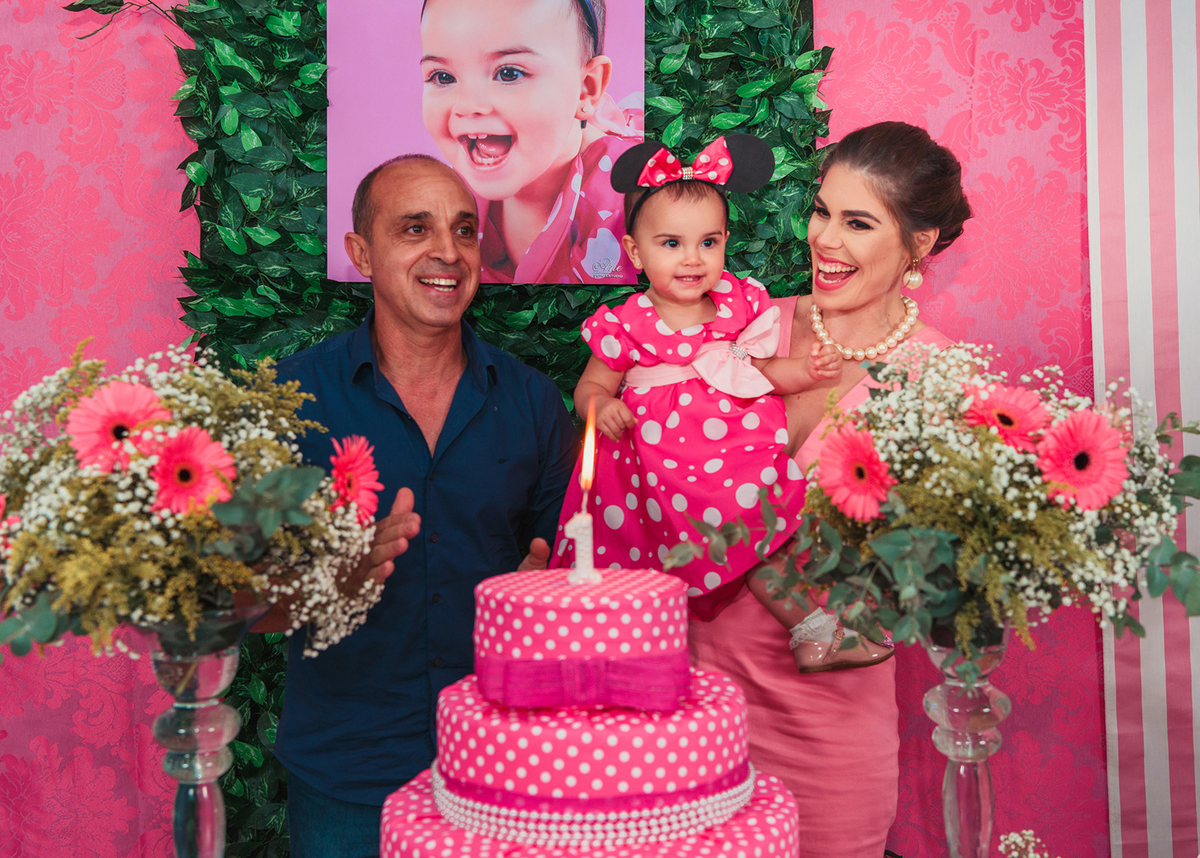 O Aniversário da Ana Alice foi com o tema Minnie Rosa, ou seja, a cor rosa foi destaque na decoração, o que deixou as fotos muito meigas.