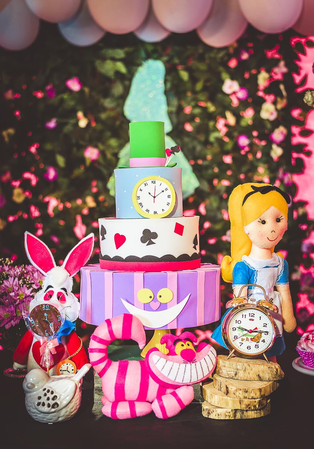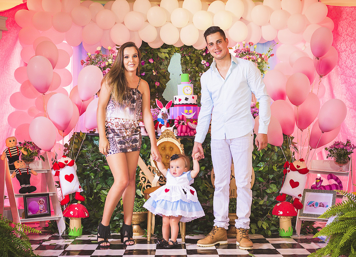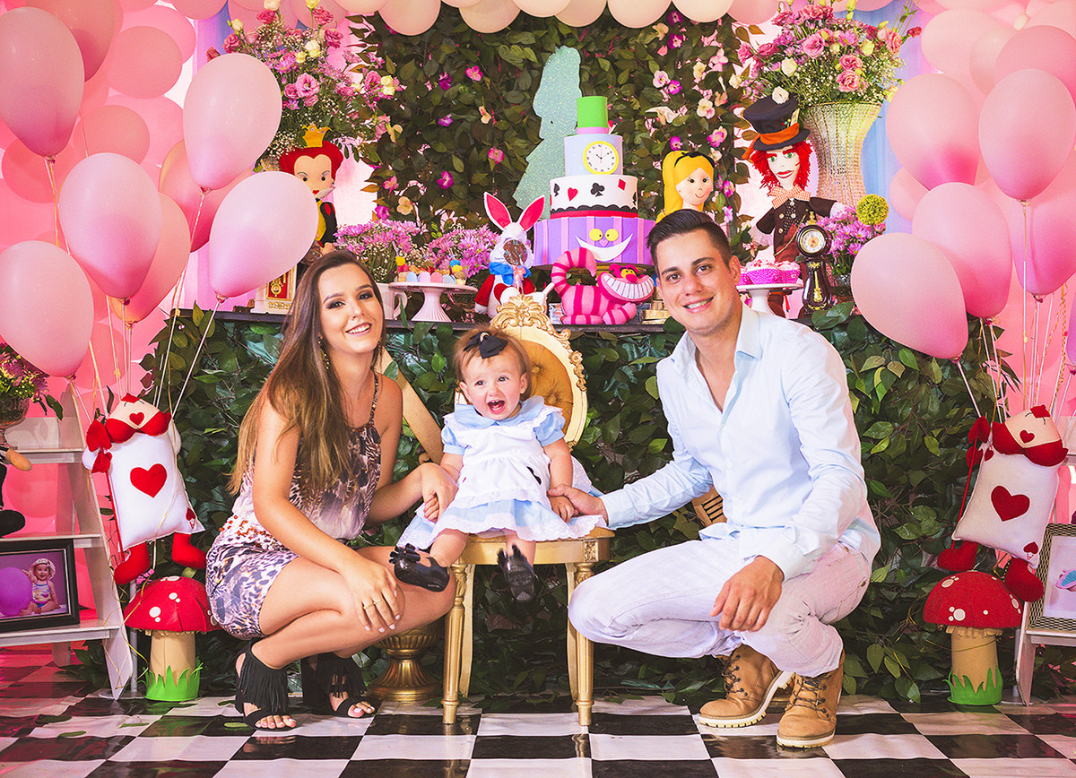 A festa do 1º ano da princesa Manuela foi linda, com toda família reunida e grandes amigos. O tema escolhido foi Alice no País das Maravilhas.